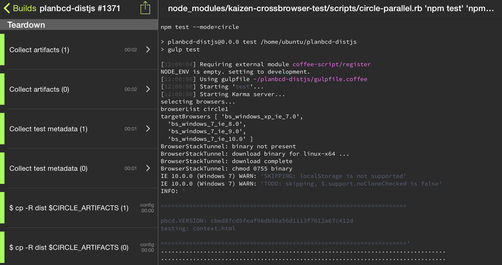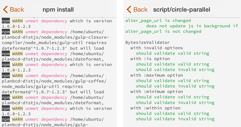 // Circle CI の API の制限上、現在実行中のログは閲覧できません。