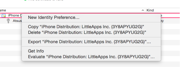 自身の証明書と Apple Worldwide Developer Relations Certification Authority を Keychain Access.app で検索し、右クリックでエクスポートします。