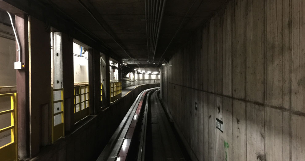 帰りはシアトル経由。写真はターミナルを結ぶ地下鉄。