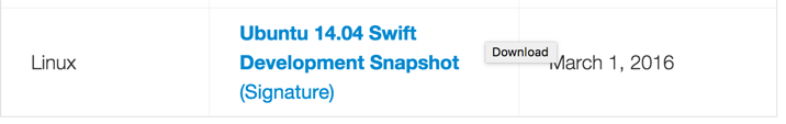 Swift ランタイムは、Trusty Ubuntu (14.04) でビルドされた、開発スナップショットを使います。