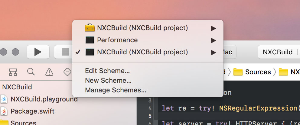 Xcode が開くので、NXCBuild ターゲットを上のスクリーンショットと同じように選択し、⌘+ R でサーバーアプリケーションを起動します。